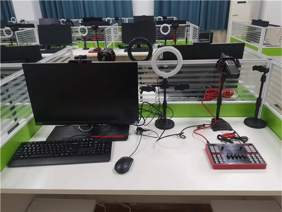 每个工位配备了10代i7计算机、摄像头、补光灯、音频采集处理等设备,能够开展新媒体的产品直播相关课程,让学生对电商直播知识进行有效的融合,掌握产品推广、客户沟通、直播间脚本撰写,新媒体运营策划等技能。